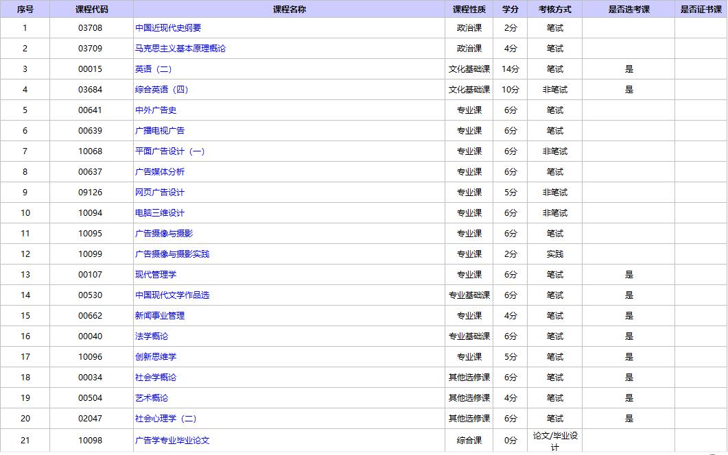 北京自考广告学大学本科的主要考学校是北京联合大学,现阶段该技术专业现有21门课程考?,在其中包含东西方广告宣传史、媒体广告剖析、电视广播广告宣传等11门必学课程和音乐(二)、新闻事业管理方法、创新思维能力学等10门选考课程。北京自考广告学大学本科课程关联如下图所显示: