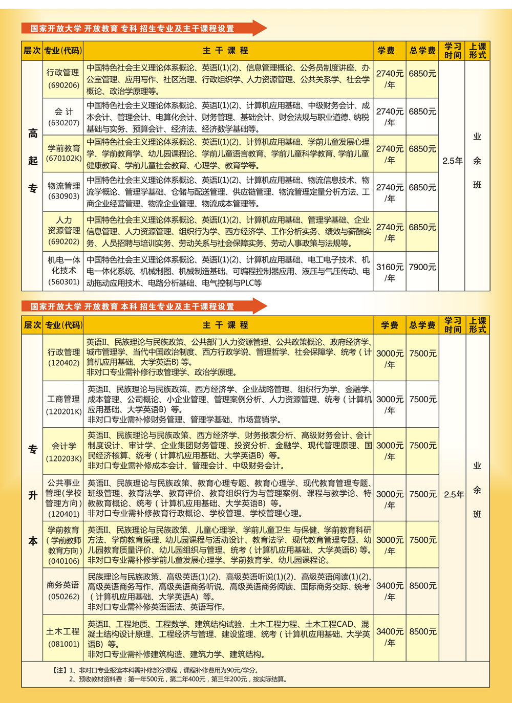中山电大国家开放大学招生专业主修科目及培训费状况详细下面的图: